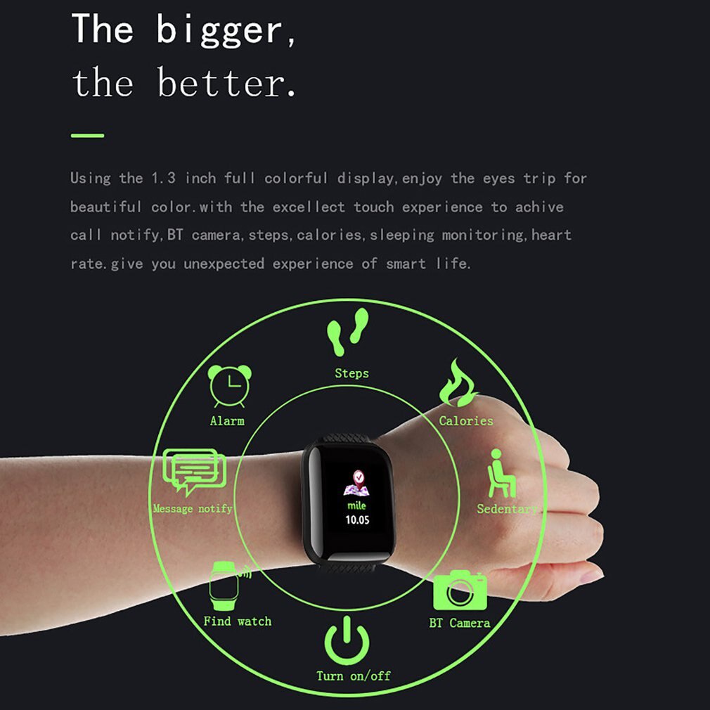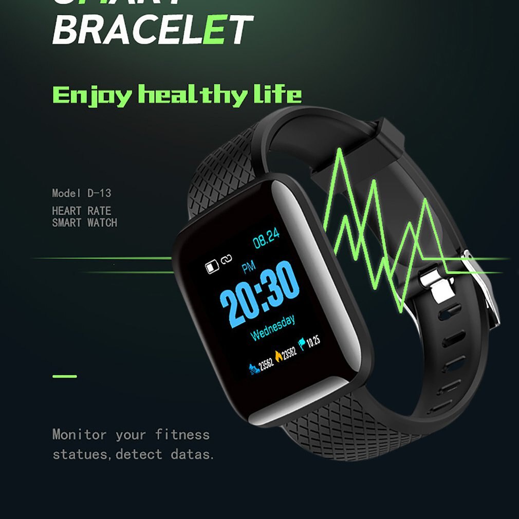 116Plus Color Screen Smart Watch Sleep Monitoring Watch D13 Real Time Heart Rate 1.3 Inch Sleep IP67 Waterproof Wristband Gift