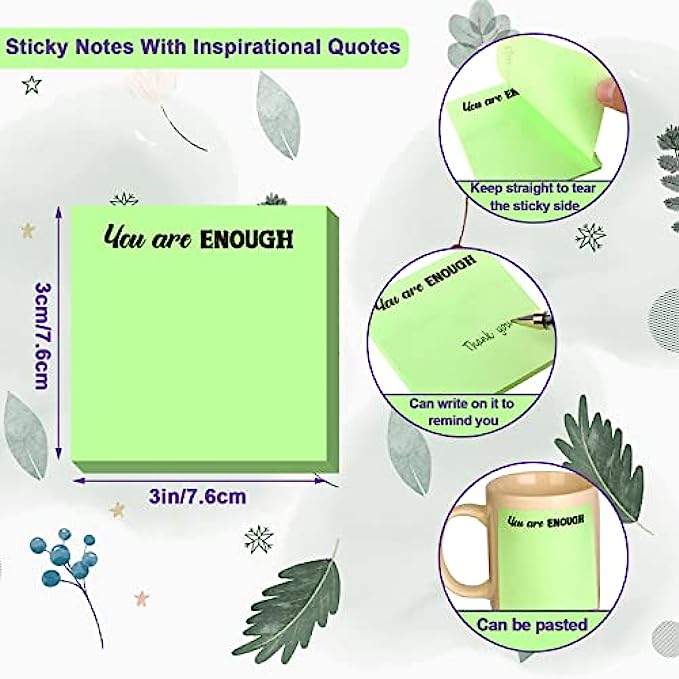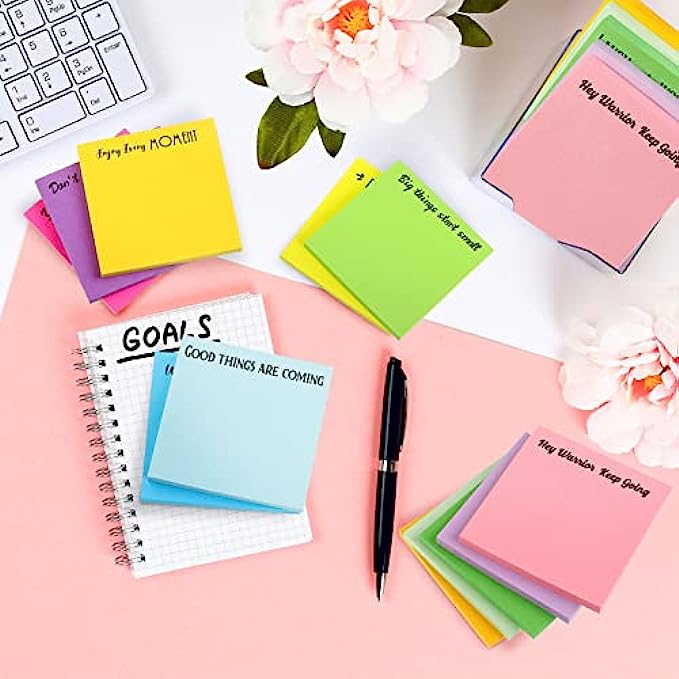 • Inspirational design: the motivational sticky notepads are designed with inspiring quotes on the colorful memo notepads, including the sentences of hey warrior keep going, do your things, wake up with a purpose, good things are coming, you are enough, enjoy every moment, you are awesome, make yourself a priority, laugh more worry less, keep your head up, don't stop believing, little things make big, which can encourage you to keep active attitudes to your life