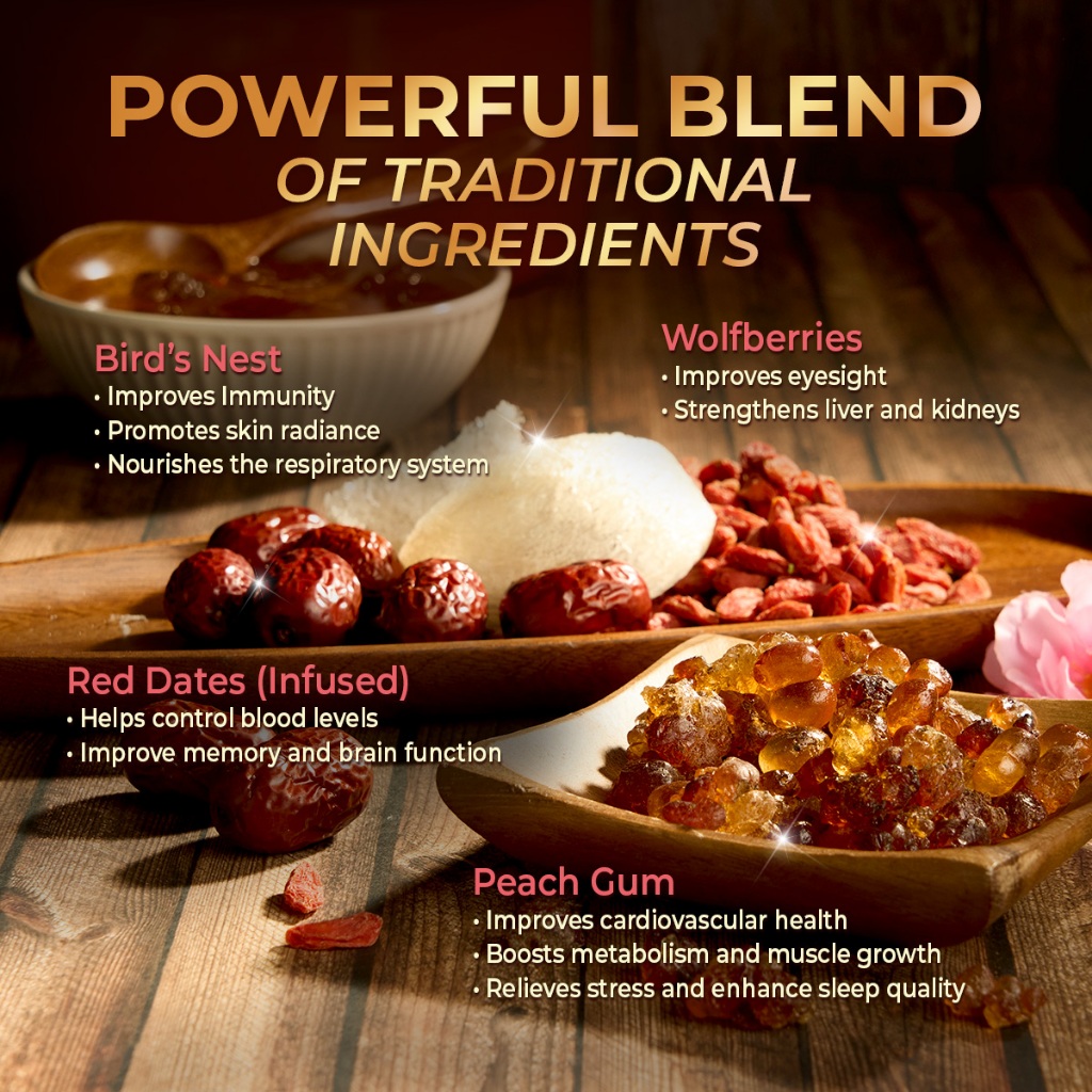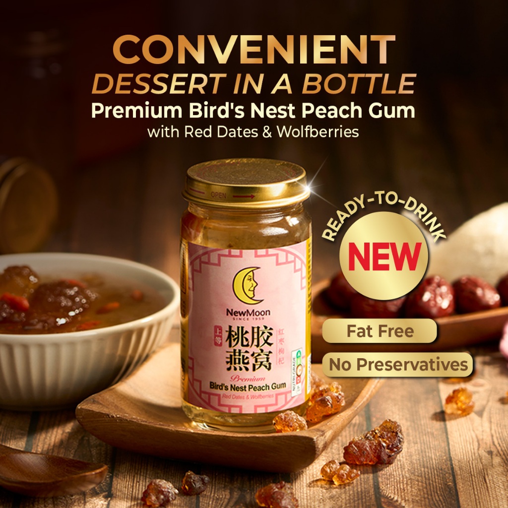 [2 Cartons Deal] New Moon Premium Bird's Nest Peach Gum with Red Dates & Wolfberries 150g x 15 bottles