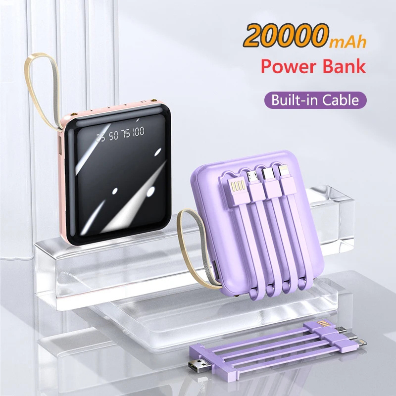 20000mAh Mini Power Bank Built in Cable Portable Powerbank iPhone 15 14 13 12 11 Mini Pro Max Plus Teachers Day Gifts Se