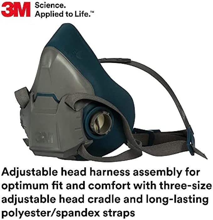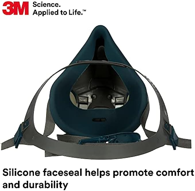 3M Rugged Comfort Half Facepiece Reusable Respirator 6503/49491, Cool Flow Valve Helps Reduce Heat and Moisture, Silicone Faceseal Provides a Firm Seal, Welding, Sanding, Cleaning, Grinding, Large