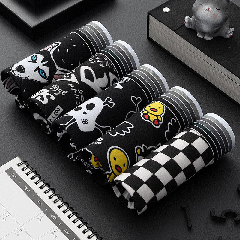 5Pcs/Set Seluar Dalam Lelaki Boxer Men Underwear Men Spender Lelaki Panties Cartoon PantiesGraffiti Plus Size Ice Silk