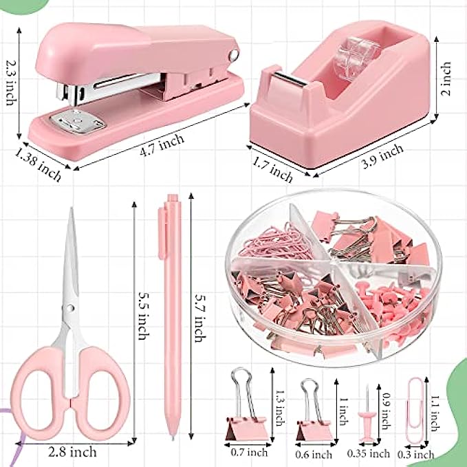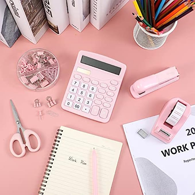 • Value Pack: you can get 1 stapler, 1 desktop tape dispenser, 1 ballpoint pen, 1 box of binder clips and paper clips, 1 scissor and 1 calculator, such a complete office supplies combination is enough to meet your study or office needs