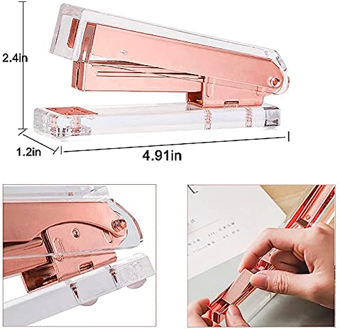 • 【SUPERIOR FUNCTION 】The tape dispenser has a quality sharp sawtooth blade which enables you to tear the tape with ease. It weights enough allowing for single hand dispensing which helps elevate your work effectively. The stapler has a high quality stapling mechanism with solid interior, jam-free stapler with easy top-loading system can staple 20 pages easily. Inclued 1000 rosegold standard size staples. It will not fail to serve as one of your desktop essential.