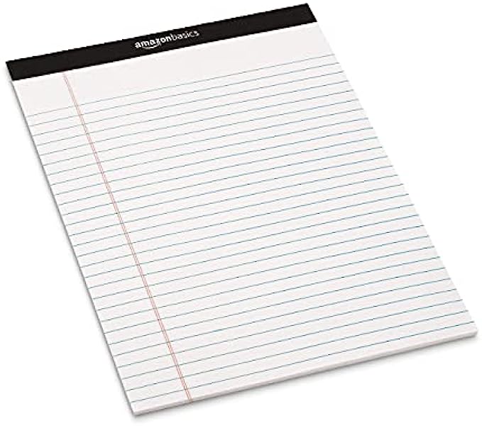Amazon Basics 50-Sheet Legal Note Pad, Wide Ruled, 8.5 x 11.75 Inches, White - Pack of 12