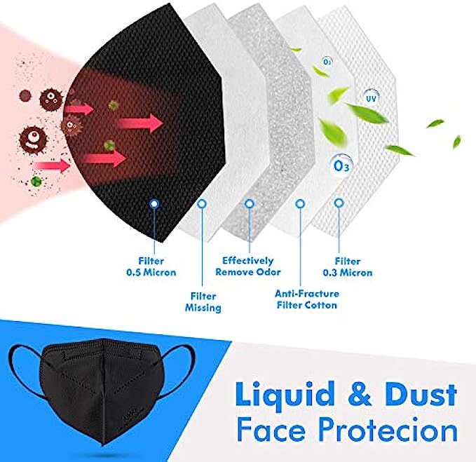 • 5 Layer Face Protection Filtration >95% Safety Masks is designed to offer more protection than standard disposable 3-Ply masks.