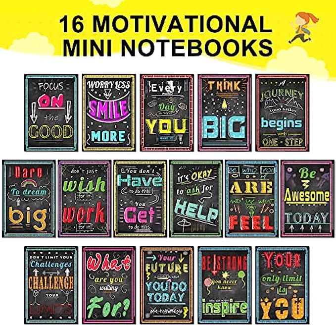 Inspirational Notepads Mini Motivational Notebook - 16 Bulk Pack Journal Pocket Notepads for School Office Home Travel Gift Supplies, Coworkers, Party Favors, Little Notebooks for kids
