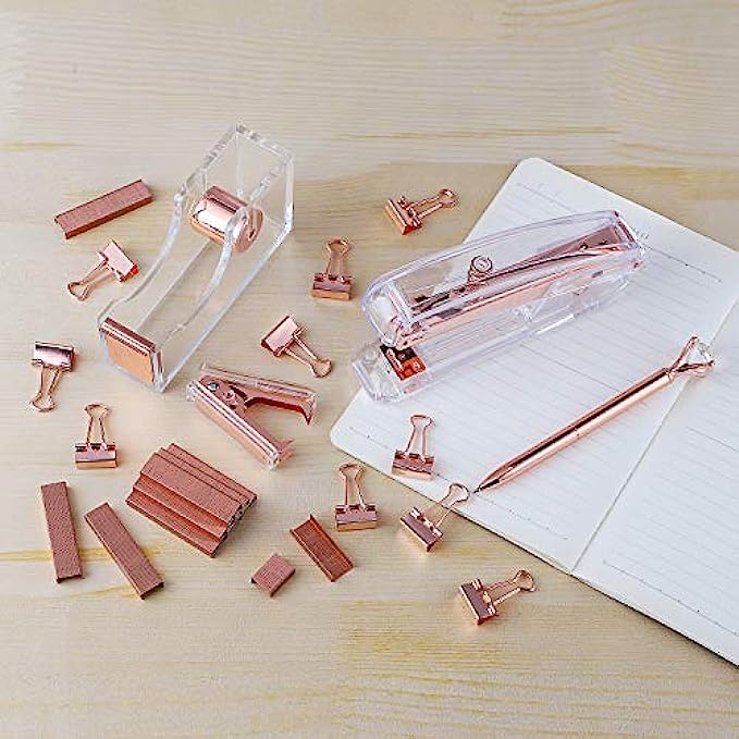 Modern desktop accessory kit with an elegant rose gold design,Great as a fashion gift for your friends or coworkers