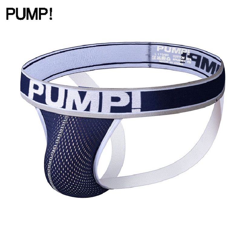 PUMP Sexy Jockstrap Men Underwear Mesh Soft Men Thongs G strings Low waist Gay Bikini Swimwear Sissy Hip lift Underpants
