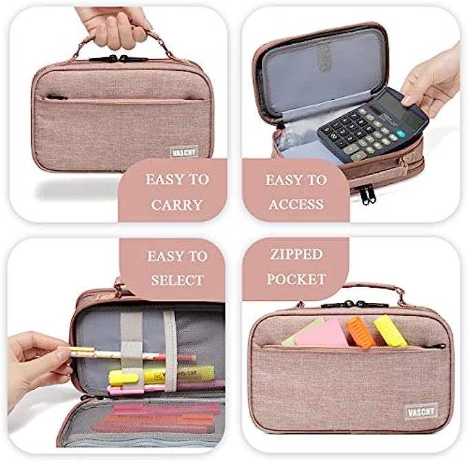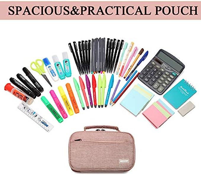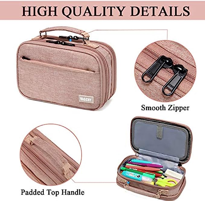 ✎EASY TO CARRY: The Vaschy double zipper pencil case is designed with a convenient top handle to carry. It is made of sturdy polyester, this case is built to last.It is lightweight yet durable and highly tear-resistant, making it a perfect material for making pen cases that will stand up well to regular use.