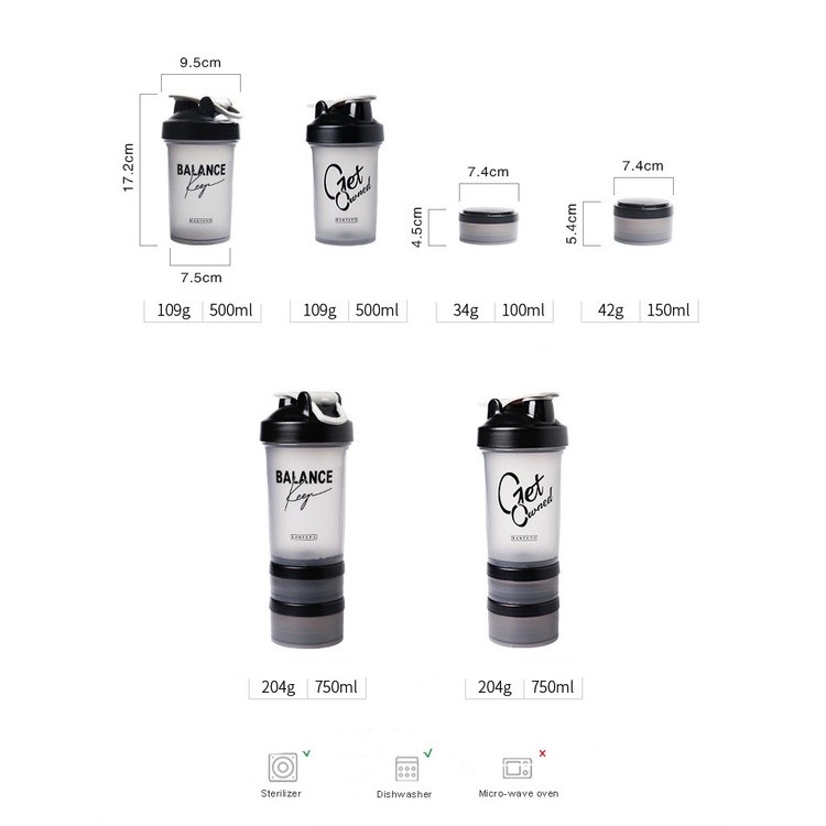 Shake Cup Protein Shaker Blender Bottle GYM Water Bottle Compartment Set 500ml