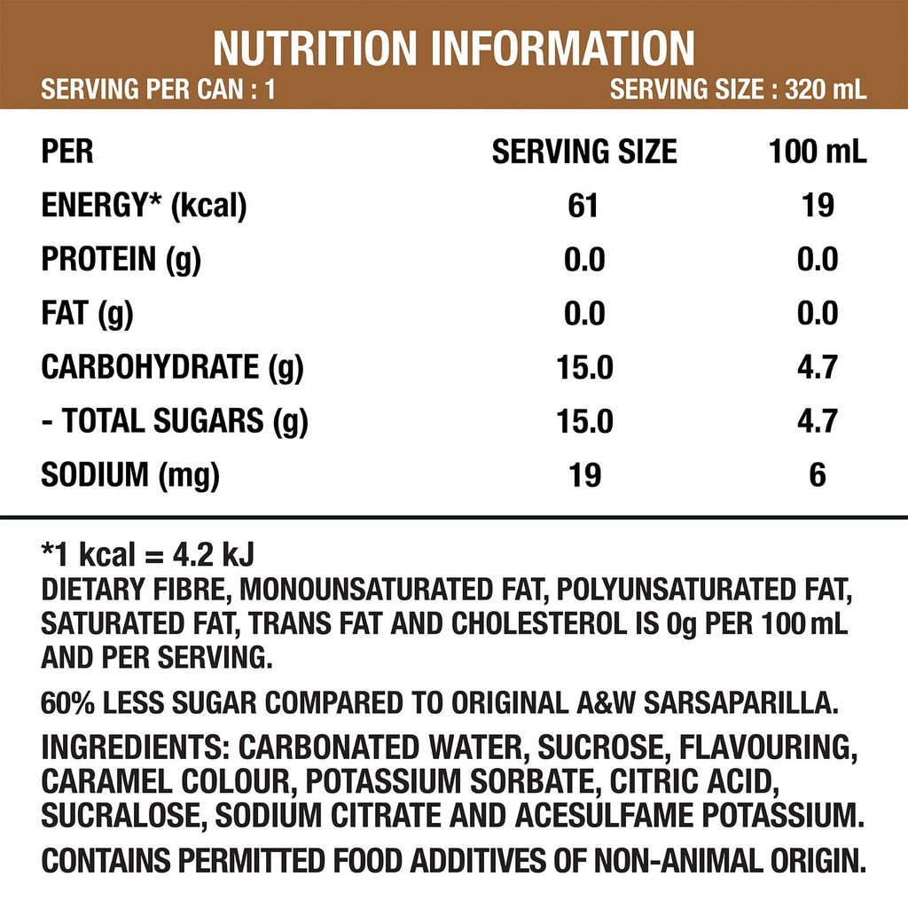 A&W Sarsaparilla Root Beer (12 x 320ml) - Case (Halal)