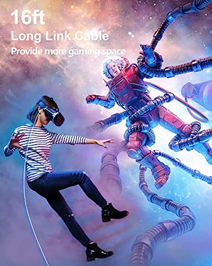 • 【16ft Long Link Cable】16ft (5 meters) long link cable can provide more gaming space, and is not easy to get tangled. You can move flexibly without being restricted when you are immersed in the Virtual Reality game