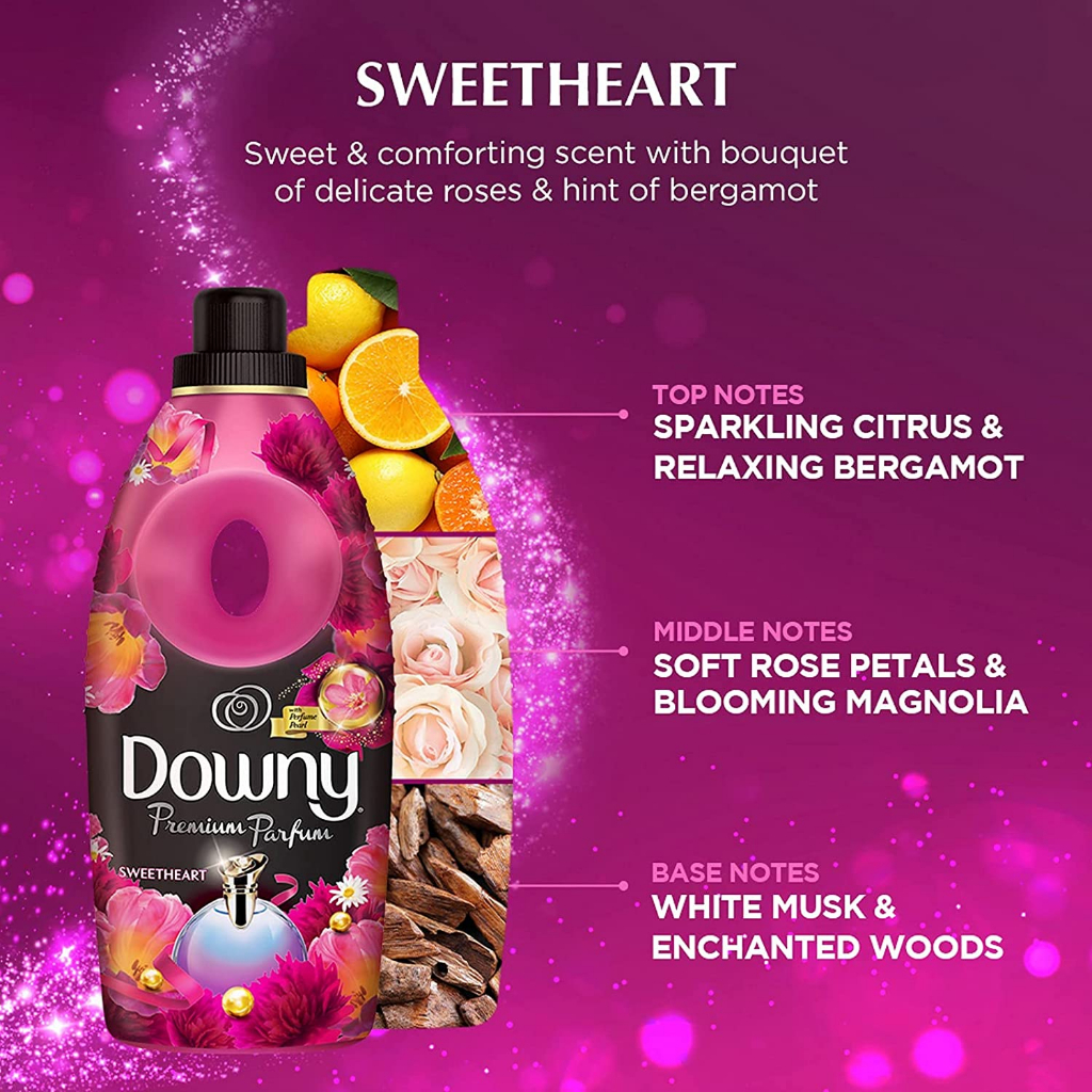 Downy Concentrate Fabric Softener - Premium Perfume, Long Lasting, Refill Pack 1L, 1.35L, 23mlx24pcs