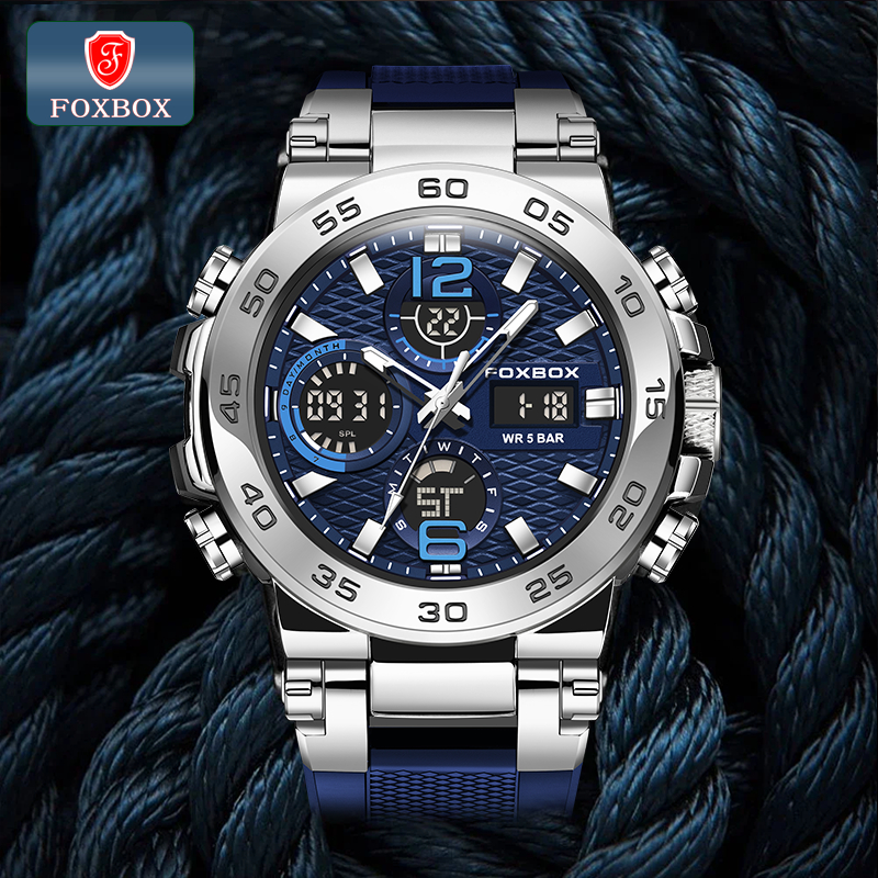 FOXBOX Watch original For Men LED Waterproof Sport Electronic Luminous Quartz Silicone Wristwatch Date Alarm LIGE Men Watches