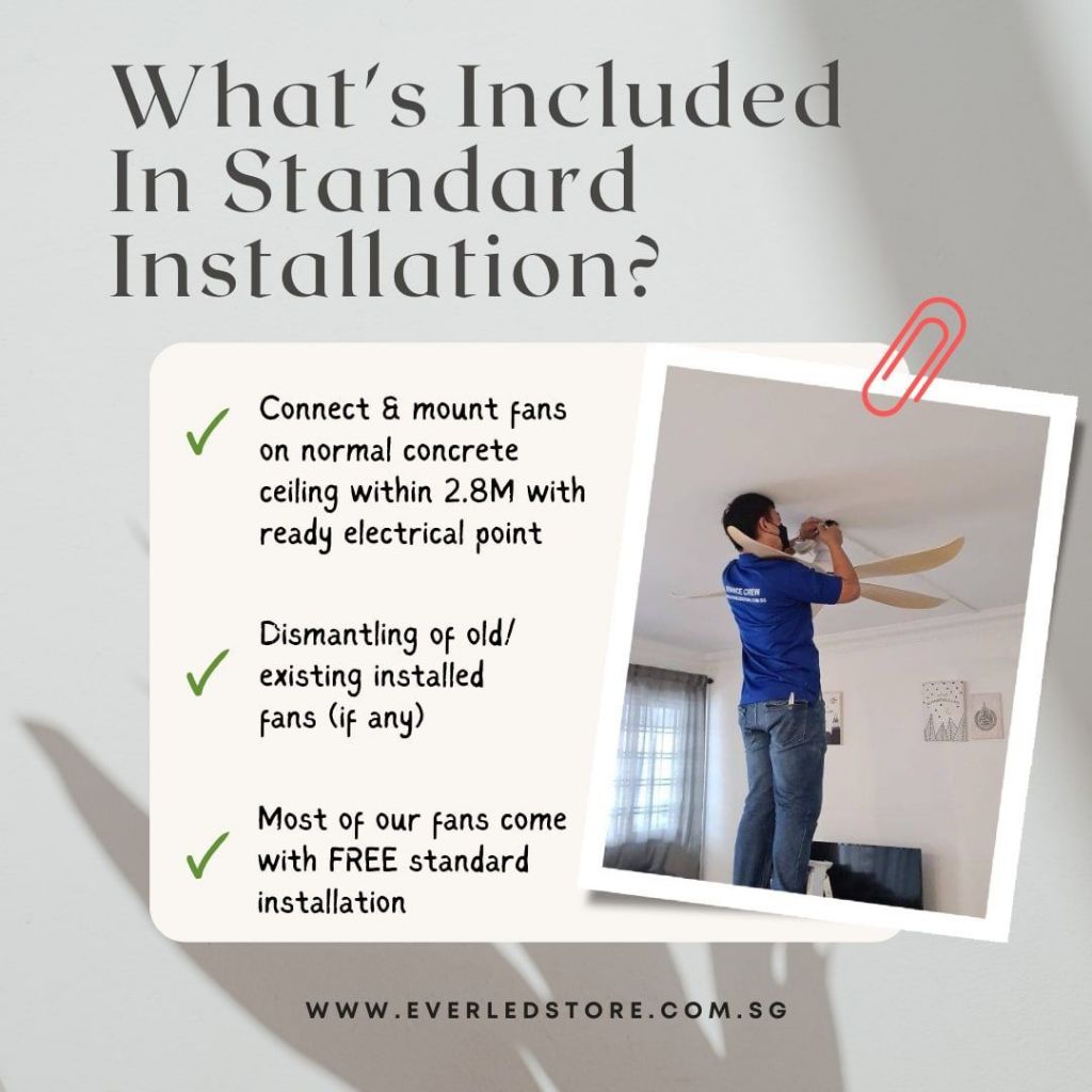 Value For Money:Good buy Performance:Good Best Feature(s):Able to circulate hot air upwards Fast and smooth transaction. Seller arranged for delivery on next day after purchase. I requested for a rescheduled delivery and installation as my unit was still under renovation. Installer came earlier then expected and completed installation for 2 fans in less than 45 mins. He explained the functions of normal and reverse fan rotation for separate usage. Overall very happy with my purchase.