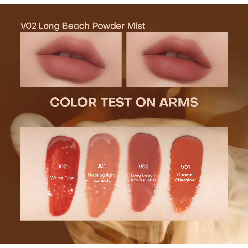 This line has no tint lip gloss. The paste is not too clear, so the color is good + standard. Beautiful gloss, less greasy, multi-layered layer is still even without slipping The J03 tea pink style has a very pretty brown light, neither too pink nor too orange brown, lightly painted like mlbb. Not picky skin