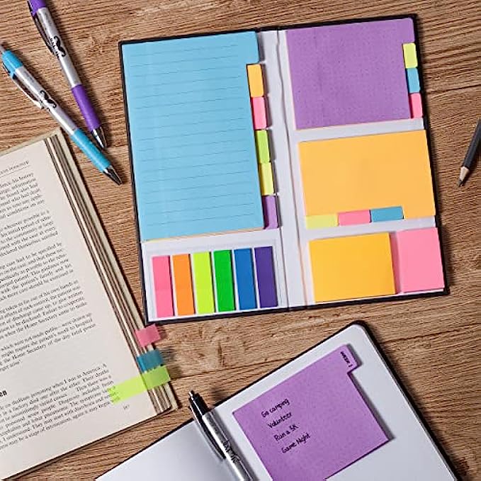 • Each sticky notes set includes 60 Ruled (3.8x6’’), 40 Dotted Notes (3x3.8’’), 40 Blank (2.6x3.5’’), 60 Orange and Pink, 150 Neon Color Index Tabs, 410 Total Tab Divider Notes