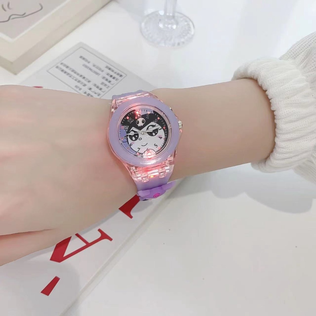 Sanrio Melody Kuromi Cinnamoroll Pom Pom Purin Stella Lou Cartoon Children's Watch With 7Colorful Flashlight Nightlight