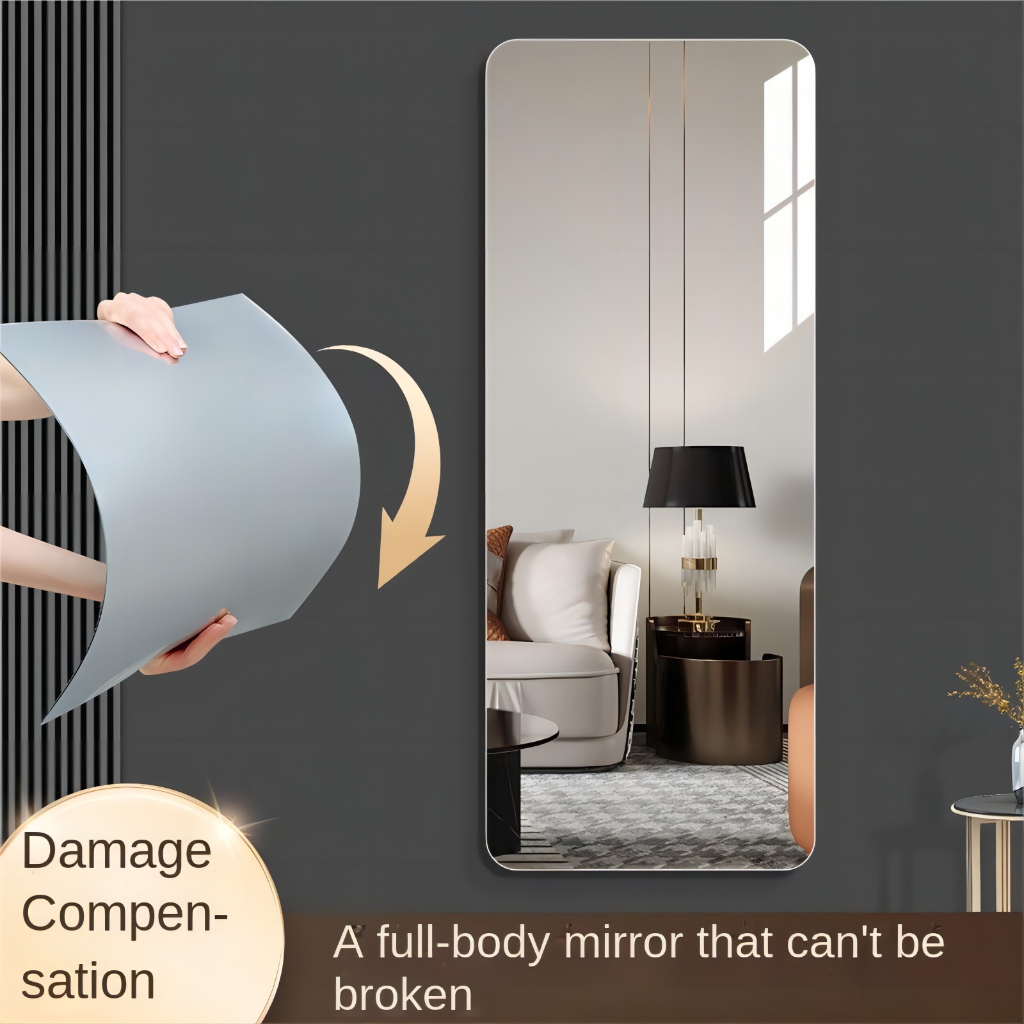 SG [READY STOCK] Acrylic soft mirror self-adhesive mesh red makeup mirror dormitory wall mounted dressing mirror full body mirror household bathroom mirror