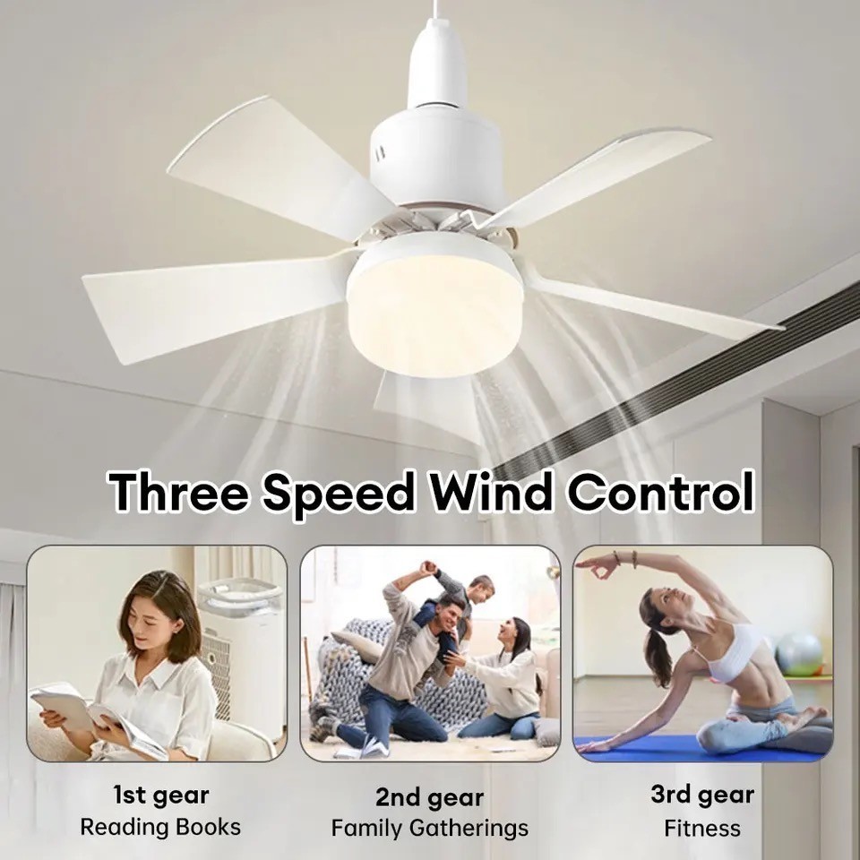 ?【READY STOCK】E27 Ceiling Fan With LED Fan Light 6 Blades Small Ceiling Siling Cooling Electric Fan Lamp Remote Control
