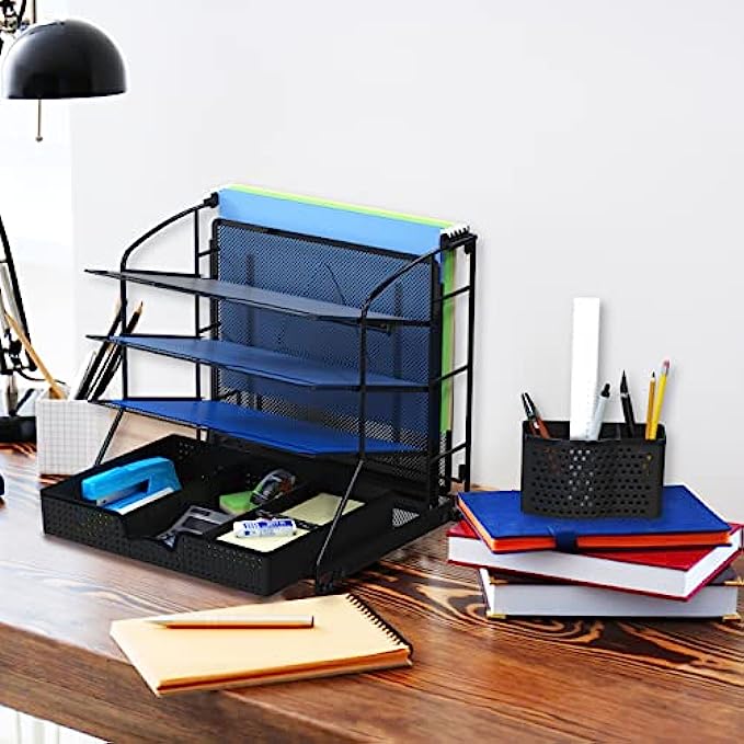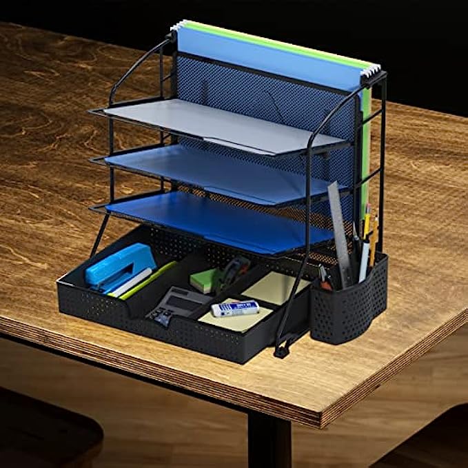3-tier document trays and one hanging file section in the back