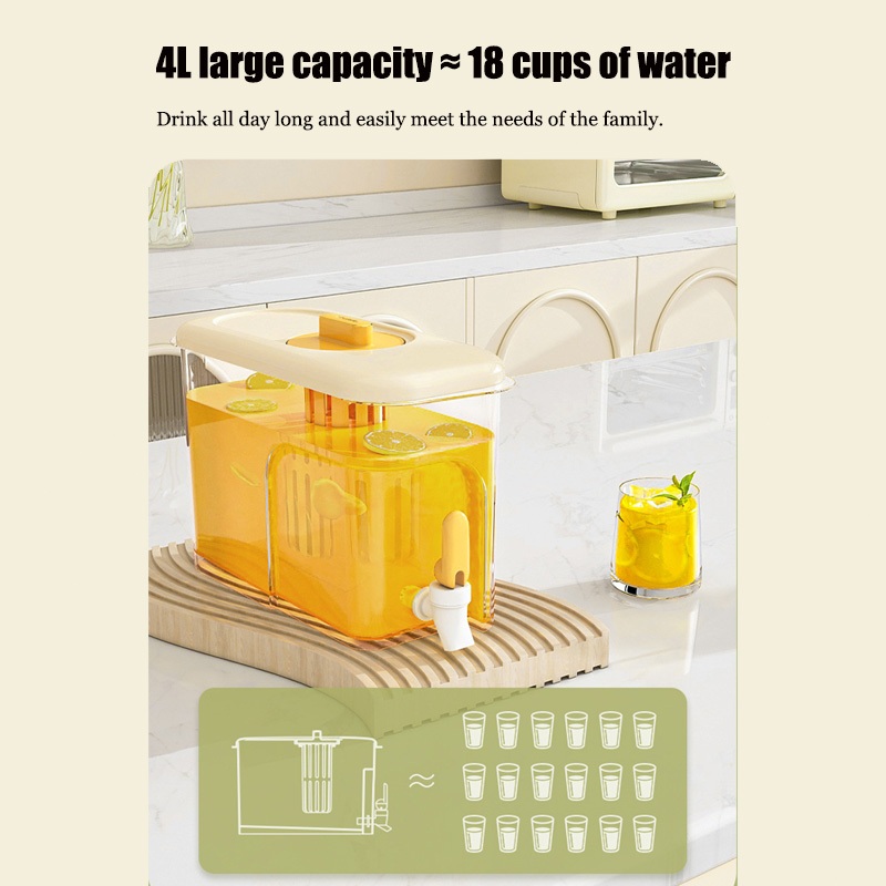 SPOETRY 4L Refrigerator Cold Water Bottle Water Dispenser for Fridge with Tap, Drinks Dispenser Food Grade Material