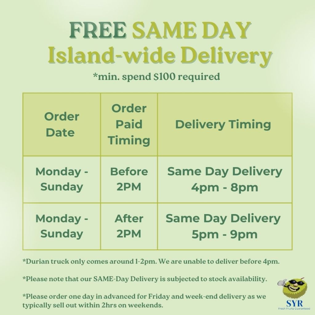 First time purchase from this seller. Received 1 hour after put in order. Taste superb, fleshy and creamy with small and flat seed. Black gold MSW are always my top favourite.