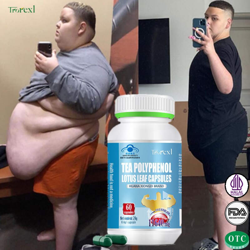 Trorexl 60 Capsules Halal Tea Polyphenols Lotus Leaf Extract-Quick Weight Loss Capsules for Men-Healthy Weight Loss-100% Effective-Burn Fat